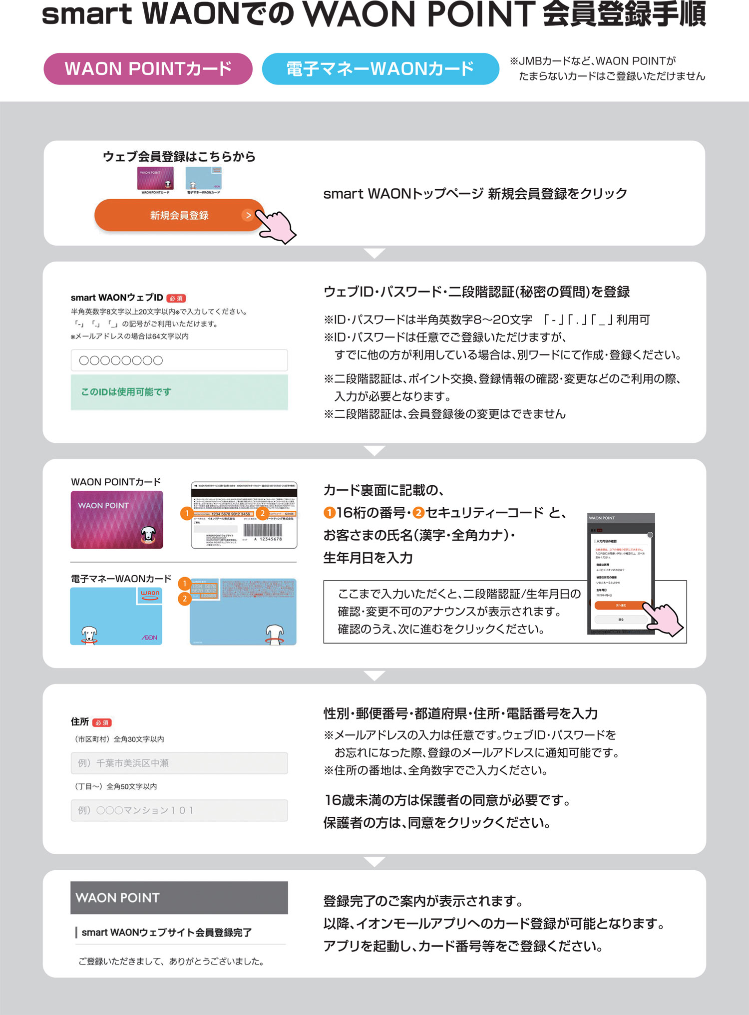 ※「WAON POINT会員登録」をしても、「電子マネーWAON会員」へ自動的に登録はされません。